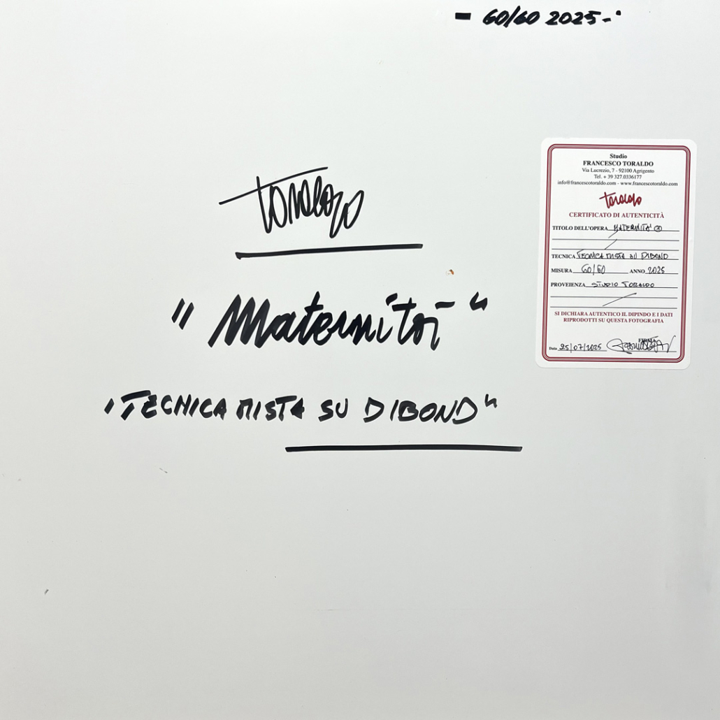 Sul retro riporta tecnica, dimensione, titolo, firma e Certificato di Autenticità