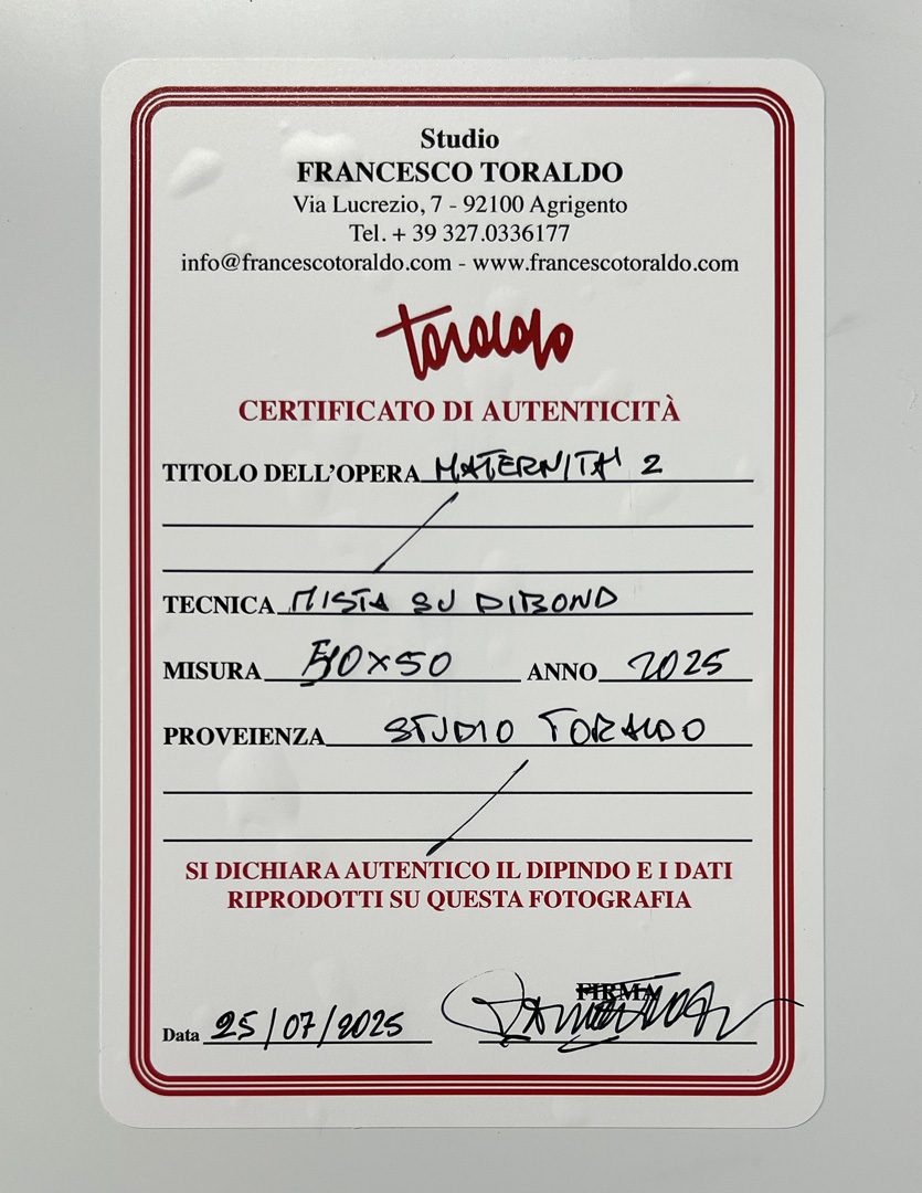 Sul retro riporta tecnica, dimensione, titolo, firma e Certificato di Autenticità