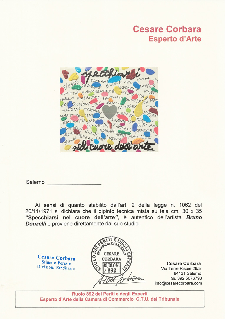 Certificato di Autenticità e di lecita provenienza rilasciato da Arte Contemporanea Italia